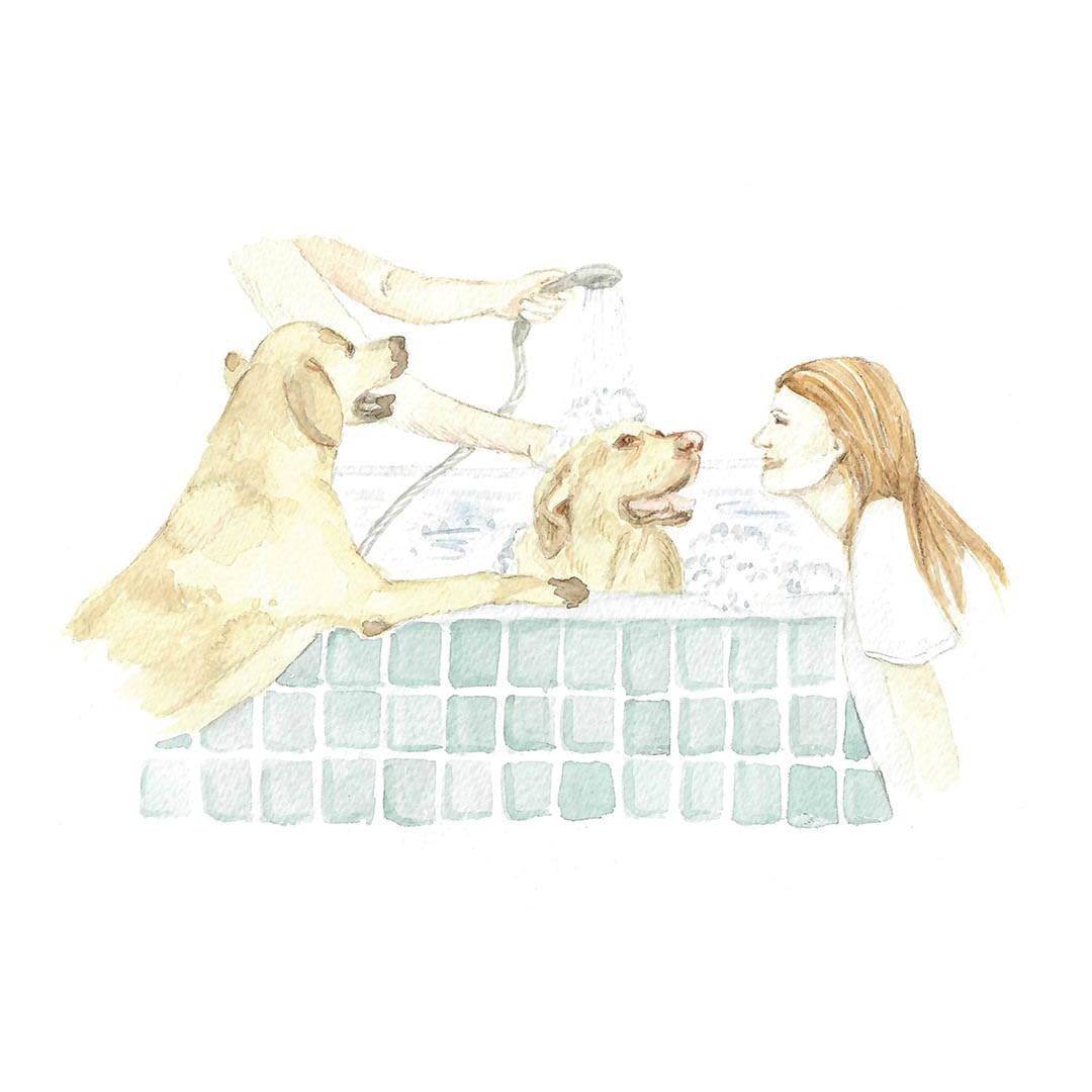 Gentle, hand-painted watercolor illustrations for ‘The Labradors in the Veggie Patch’ by George Rawling, 2021.