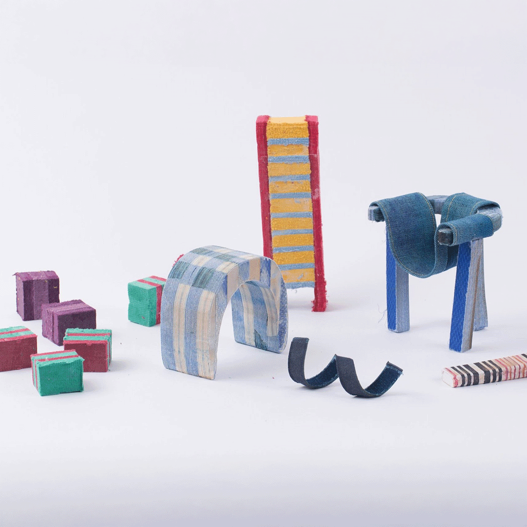 This project repurposes discarded fabrics into a high-quality, plywood-like material through layering, gluing, and pressing. developed during my design studies at DAE and exhibited at the Textile Museum in Tilburg in 2018.