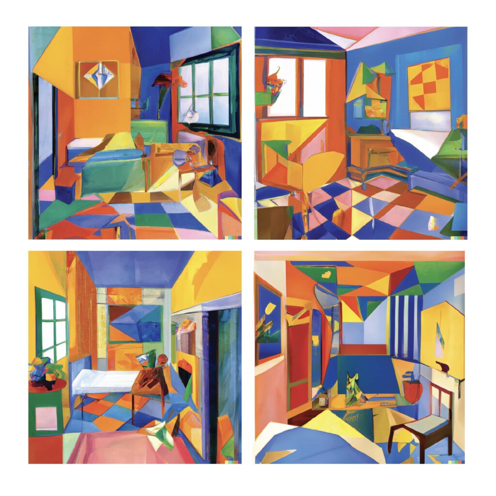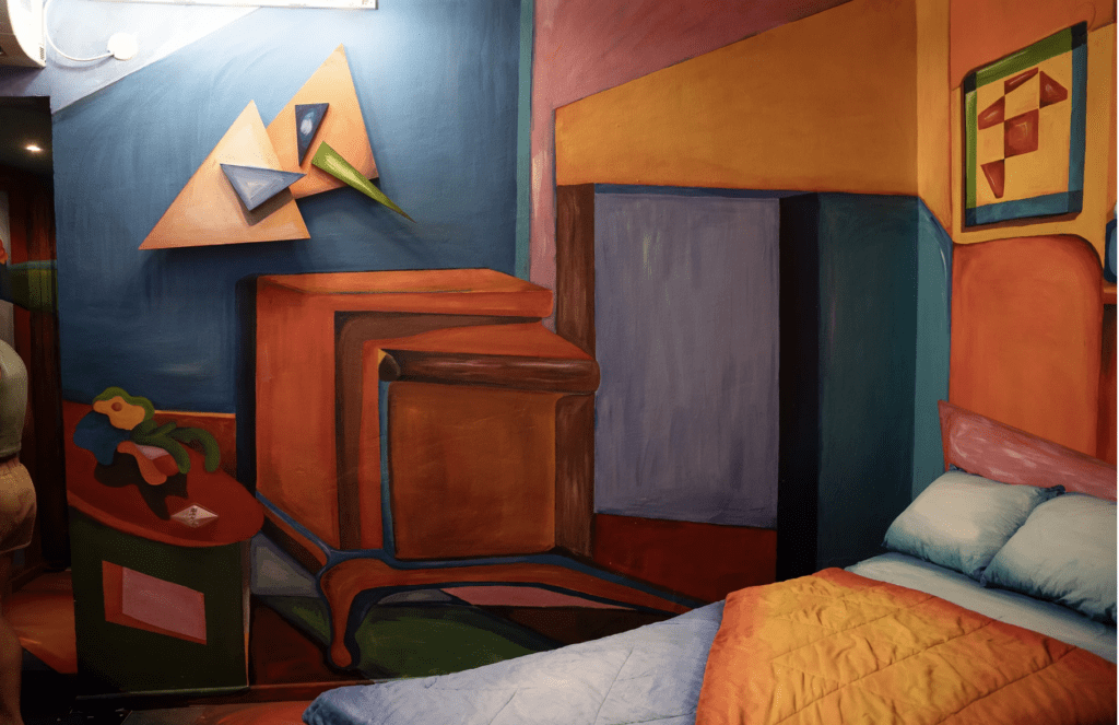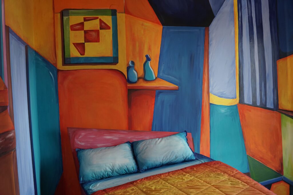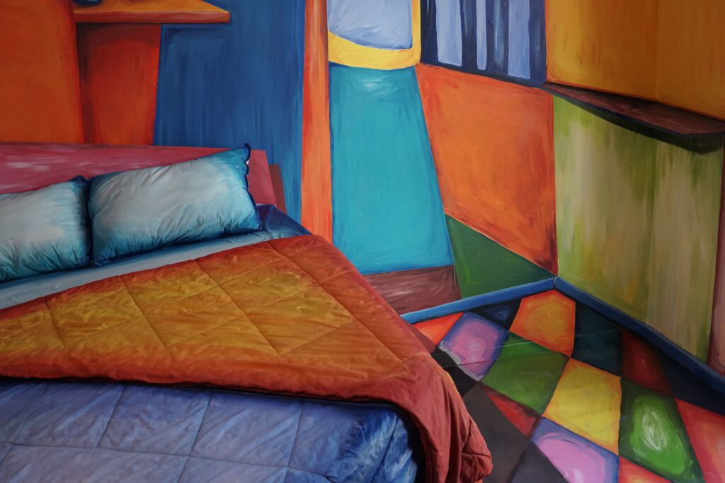 This project started with an idea—what if AI could paint a hotel room inspired by great artists? We asked DALL-E to generate two-dimensional abstract paintings, blending the styles of Henri Matisse and Leonardo da Vinci. Then, we transformed these digital visions into a physical space, carefully integrating hand-painted elements to break and reimagine perspective. Working on this with Tamar was a playful and surprising experience, where technology and craftsmanship met to create something truly unique.
