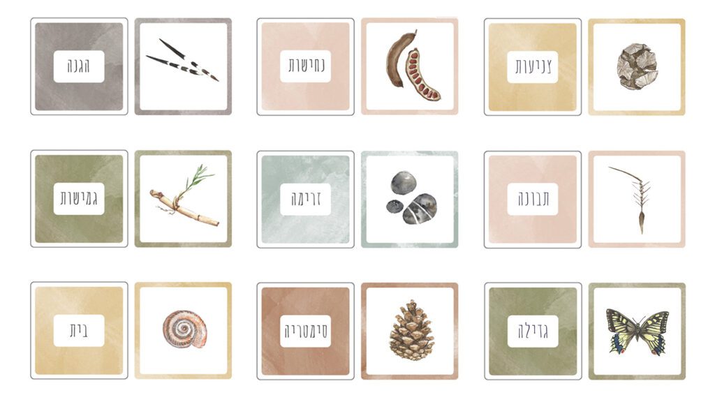 I was thrilled to develop the visual concept, logo, and illustrations for this thoughtful project for Beni Cohen. The game includes a set of illustrated cards, each featuring a watercolor depiction of a natural element paired with its symbolic value. Kids use the cards as inspiration to find similar elements in their environment and craft personalized "mascot necklaces" using the art supplies provided in the kit.