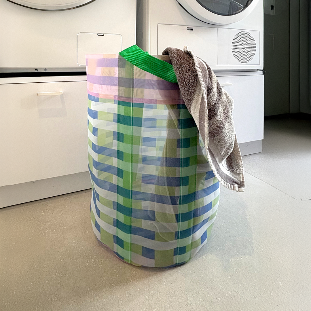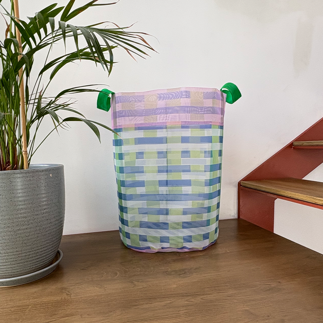 The Orna basket is designed to give a light touch of style to your everyday life at home. based on a unique, high-quality, transparent textile that gives a light and delicate look while remaining practical and durable.