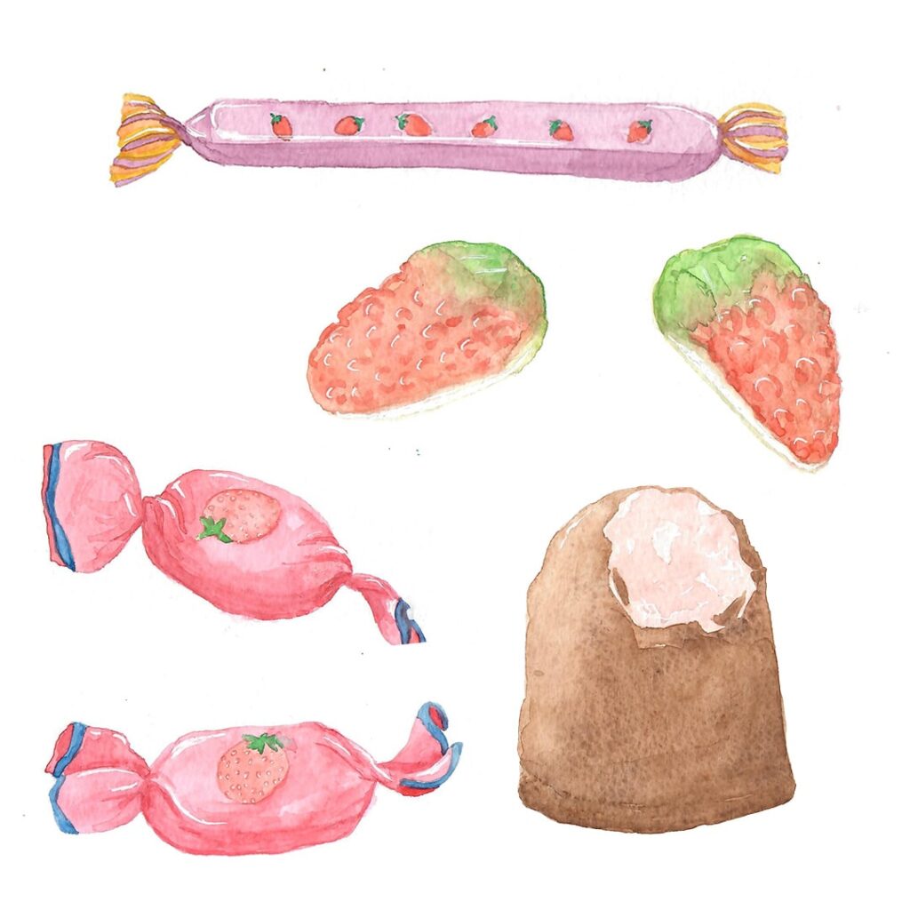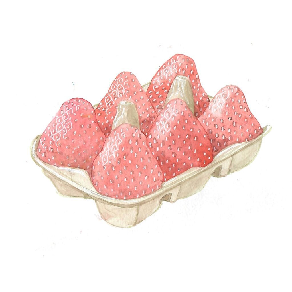 For Super Yuda, I painted a series of watercolor illustrations inspired by Ramat Hasharon’s renowned strawberry fields. The vintage-style artwork was used to create a seamless pattern for the supermarket’s wallpaper, aligning with the concept envisioned by the interior designer.
